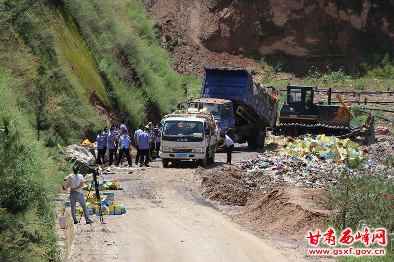 为了提高广大消费者的维权意识,进一步保障人民群众饮食用药安全,警示、震慑不法分子违法制售假冒伪劣食品行为,7月17日,市、区食药监局联合在彭原镇下庄村垃圾填埋场开展不合格食品药品集中销毁行动。
