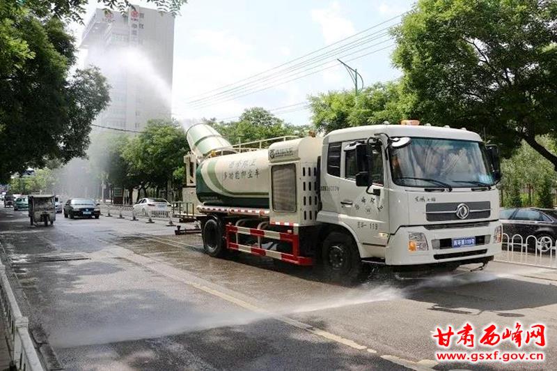 突出重点区域,持续开展精准治污抑尘。结合监测点数据变化及通报的问题路段,确定重点区域、重点路段,固定作业车辆,采取全天候巡回冲洗、不间断雾化降尘和机械化清扫相结合的综合治理模式,提高精准抑尘质量和效果,确保庆阳五中片区、弘化路片区、陇东学院片区、庆化大道、长庆大道、九龙路、朔州西路、西大街等重点区域扬尘污染得到有效控制,整治成果得到有效巩固。同时坚持每周二对五中校园内道路、操场、墙体、树木进行冲洗除尘作业,并配合清扫车开展湿法洗扫作业。