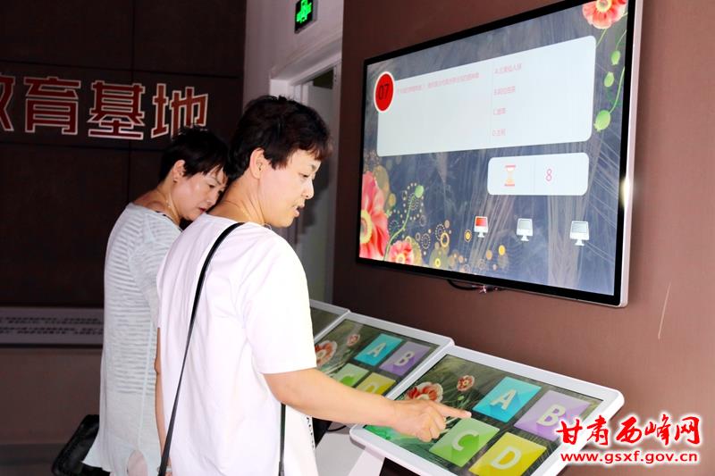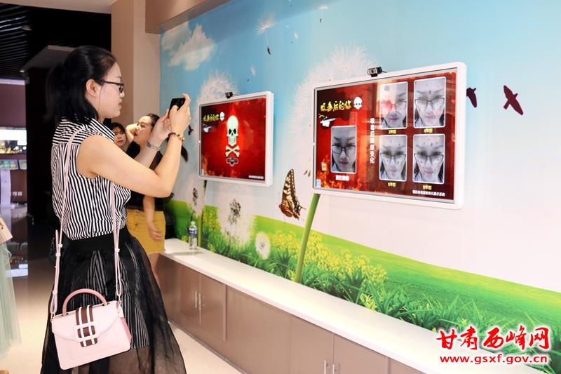 活动中,区禁毒办召集全区80名禁毒专干,首先组织前来参观教育基地人员关注各级禁毒微信,并指导参与全国禁毒公益歌曲比赛甘肃省初赛微信投票活动。随后在讲解员的引导下参观了基地,参观人员对高科技电子设备进行了亲身体验,在多媒体演播厅,观看了区禁毒办拍摄的毒驾视频、禁毒工作专题片和禁毒公益歌曲《妈妈的呼唤》。