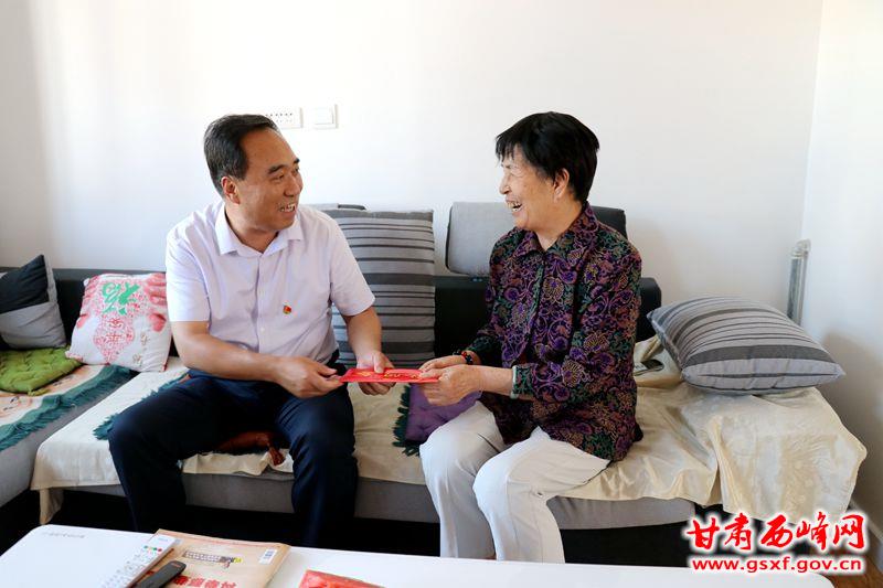 6月28日上午,区委常委、宣传部长张晓龙慰问赴董志镇北门小学慰问困难党员郭吉龙,向他致以节日的问候,并送上慰问金。